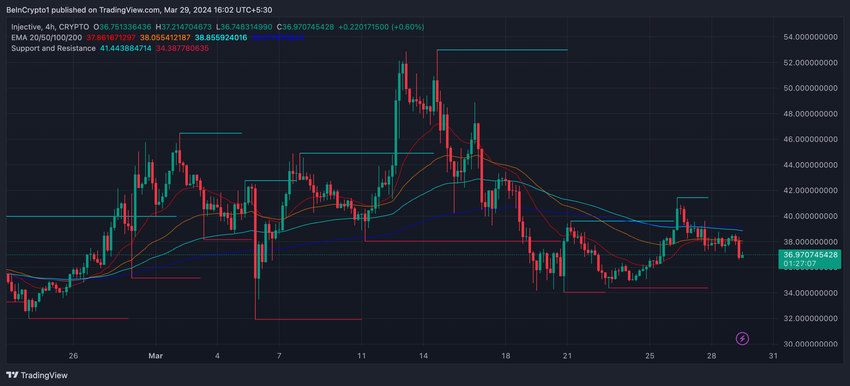 최근 INJ 가격은 지난 7일 동안 5% 상승하며 회복 조짐을 보이고 있습니다. 이는 3월 12일 51달러에서 3월 24일 35.48달러로 하락한 이후 나온 것입니다. 이러한 반등은 INJ 시장이 이전에 열정을 약화시켰던 바닥을 다지는 기간에서 벗어나기 위해 노력함에 따라 잠재적 인 상승 모멘텀을 나타내는 중요한 지표입니다.