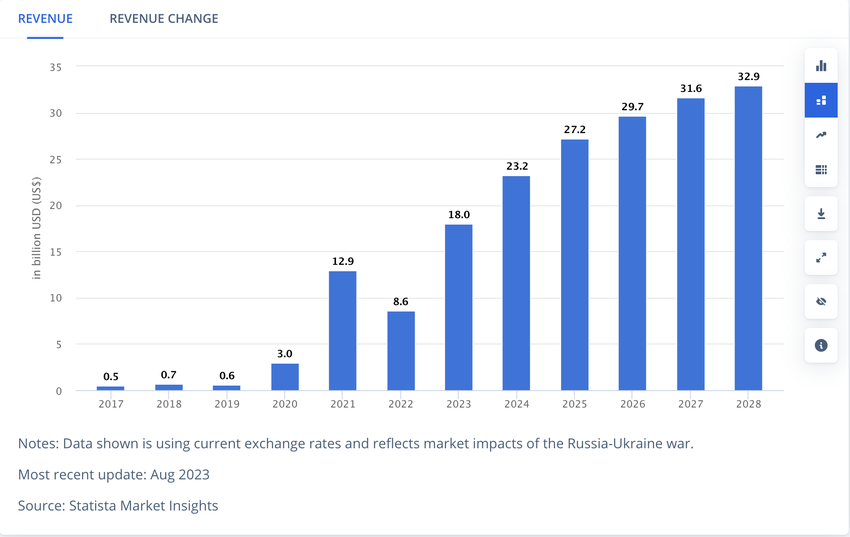 암호화폐 규제는 미국 암호화폐 부문의 매출 성장에 대한 기대감을 고려할 때 특히 적절합니다. 2024년부터 2028년까지 9.10%의 연평균 성장률(CAGR)이 예상되는 이 산업은 2028년까지 총 329억 달러의 매출을 달성할 것으로 예상됩니다.