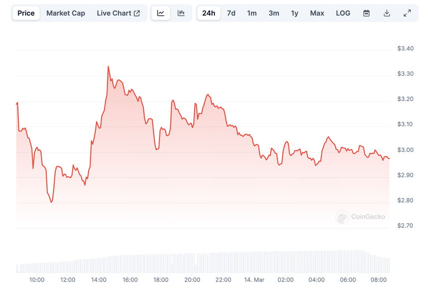 최근 AEVO 에어드랍과 바이낸스 상장에도 불구하고, AEVO 가격의 여정은 씁쓸한 이야기를 들려주고 있습니다. 한때 3.34달러로 정점을 찍었지만, 이후 몇 시간 만에 10% 가까이 조정되었습니다.