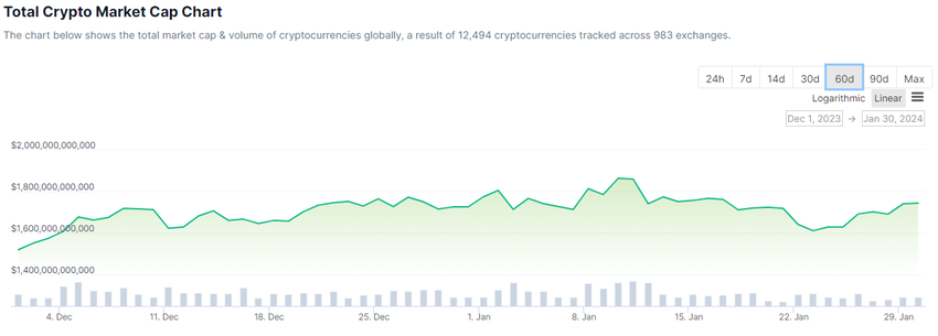 암호화폐 시장은 이날 2.8% 반등하여 작성 시점에 1조 7,500억 달러에 도달했습니다.