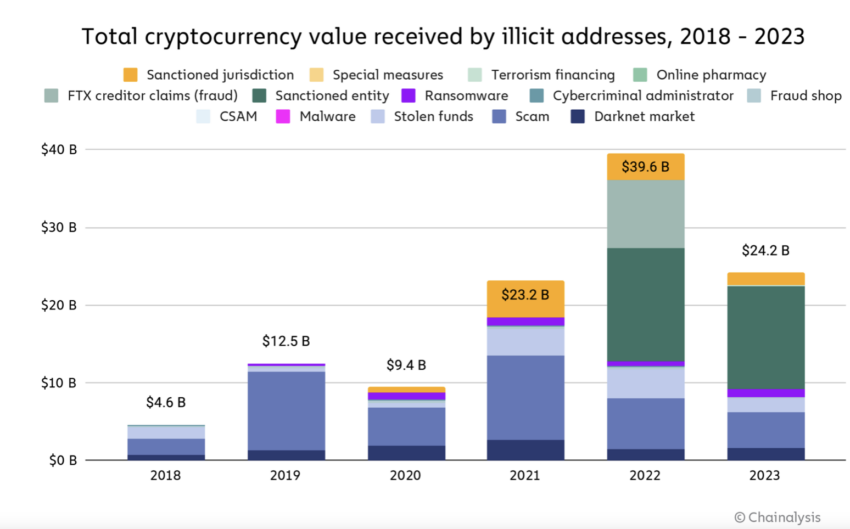하지만 체인널리시스는 최근 범죄 보고서에서 2023년 암호화폐 해킹으로 인한 수익이 전년 대비 약 54.3% 감소했다고 강조했습니다.