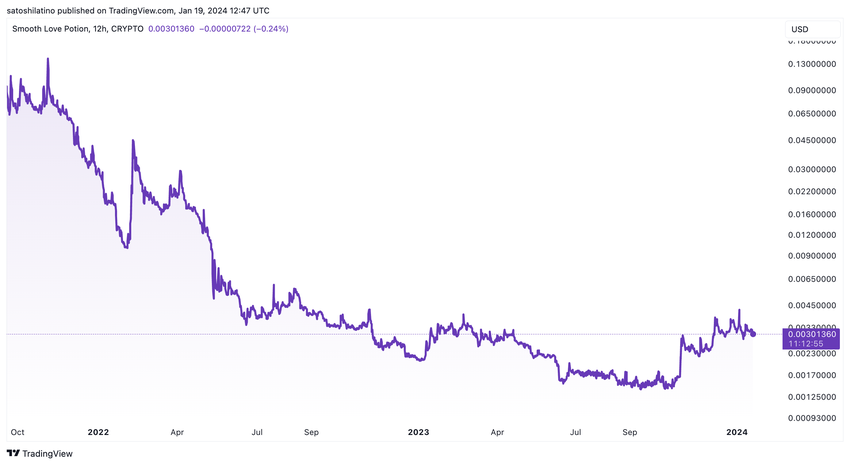 예를 들어, 높은 인플레이션으로 인해 Axie Infinity의 스무스 러브 포션(SLP) 의 가격은 여전히 사상 최고치 대비 98% 하락한 상태입니다. 이 토큰은 2023년 마지막 분기 이후 전반적인 암호화폐 시장 랠리에도 불구하고 크게 회복하지 못했습니다.