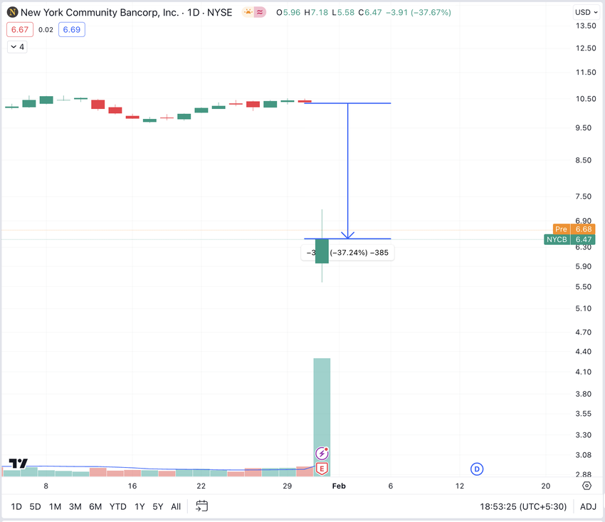 배당금 삭감과 깜짝 손실로 촉발된 NYCB의 급격한 주식 가치 하락은 규제 기준치인 1,000억 달러에 근접한 은행의 위태로운 위치를 잘 보여줍니다. 이 시나리오는 사라진 시그니처 은행의 자산을 인수한 뉴욕시티은행에 영향을 미쳤습니다. 또한 자이언츠와 코메리카 같은 다른 은행에도 영향을 미쳐 재무 안정성에 대한 적신호가 켜졌습니다.
