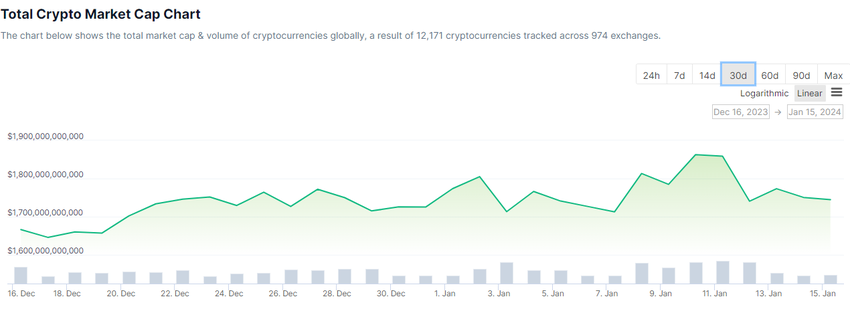 또한, 예상했던 암호화폐 조정이 현실화되면서 시장은 1월 10일 연중 최고치 이후 6% 하락했습니다.