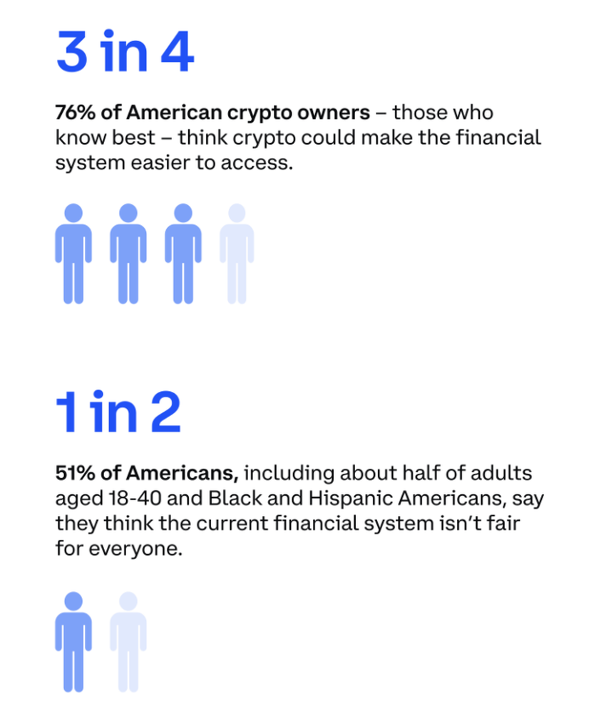 “암호화폐를 가장 잘 아는 미국인 암호화폐 소유자의 76%는 암호화폐를 통해 금융 시스템에 더 쉽게 접근할 수 있다고 생각합니다.”