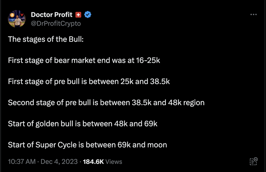 암호화폐 시장의 새로운 행복감은 비트코인(BTC)의 성장 주기를 자세히 분석하는 닥터 프로핏과 같은 애널리스트와 애호가들의 관심을 끌고 있습니다.