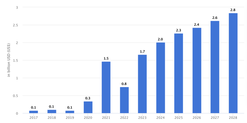 Statista는 2028년까지 러시아의 연간 암호화폐 수익이 28억 달러에 달할 것으로 예측합니다.