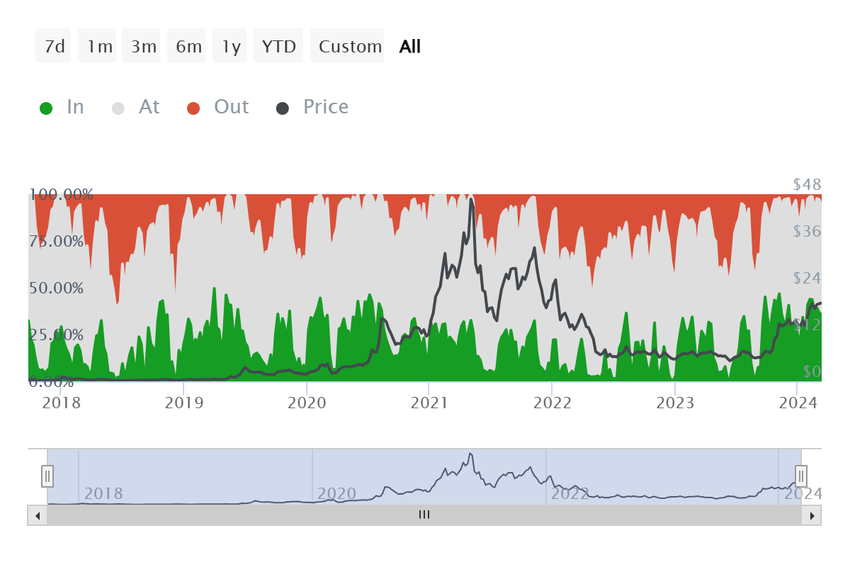 온체인 지표 성과를 살펴보면, LINK가 보유자의 백업을 기록한다는 점을 고려할 때 이러한 박스권은 계속될 것으로 보입니다. 네트워크에서 활발하게 거래를 진행하고 있는 활성 주소의 대부분은 낙관적인 투자자로 구성되어 있습니다.