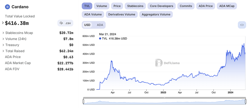 암호화폐 분석가 라크 데이비스는 카르다노의 TVL 증가는 그 유용성과 채택이 증가하고 있음을 의미한다고 지적했습니다.