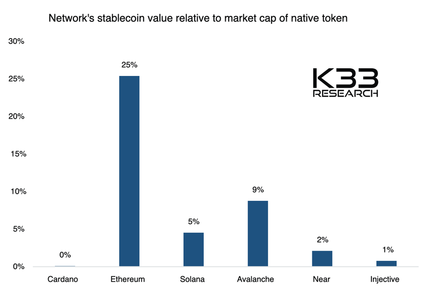 K33 리서치의 보고서는 스마트 콘트랙트 네트워크의 네이티브 토큰이 가치를 가지려면 상당한 사용이 필요하다고 주장합니다. 그러나 이 회사는 ADA가 그러한 유용성이나 이를 달성하기 위한 신뢰할 수 있는 경로가 부족하다고 주장합니다. K33 리서치의 분석가들은 거래소 송금 외에 ADA의 활용에 대한 증거가 없다는 점을 강조합니다. 또한 이들은 보유자들의 인위적인 활동도 의심하고 있습니다.