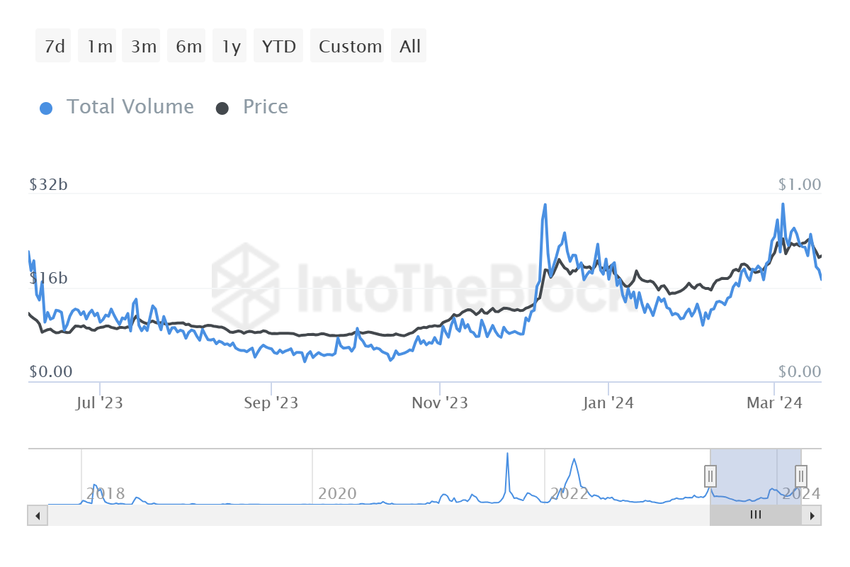 그러나 이는 5일 전 약 230억 달러 상당의 ADA를 여러 주소로 이동시켰던 거래량보다 훨씬 낮은 수치입니다. 이러한 감소는 고래들 사이에서 강세가 약해지고 있음을 나타내며, 이는 결국 가격 행동에 부정적인 영향을 미칠 것입니다.