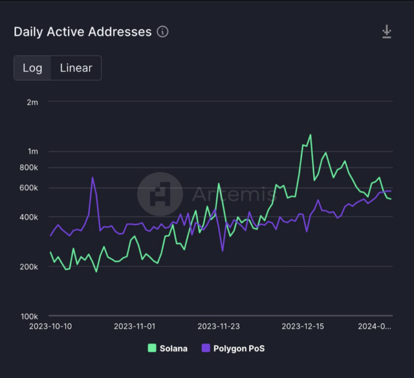 한편, 저명한 암호화폐 인플루언서인 라크 데이비스는 자신의 110만 팔로워에게 “폴리곤 POS가 일일 활성 주소 측면에서 솔라나를 능가했다”고 지적했습니다.