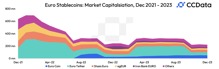 유럽에서는 곧 시행될 암호화 자산 시장 법안에 따라 프랑스의 거대 은행인 소시에테 제네랄이 유로화 기반 스테이블코인을 발행할 예정입니다. 서클도 최근 유럽의 규제가 점점 더 명확해짐에 따라 솔라나에 EURC 스테이블코인을 추가했습니다. 또 다른 코인인 USDC는 미국에서 규제 명확성 부족으로 인해 어려움을 겪고 있습니다.