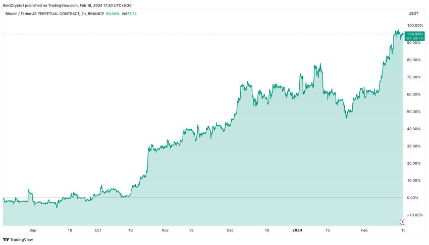 이러한 규제 완화로 지난 6개월 동안 95% 급등한 비트코인 가격은 암호화폐에 대한 긍정적인 시장 심리를 반영하며 상승세를 이어가고 있습니다.