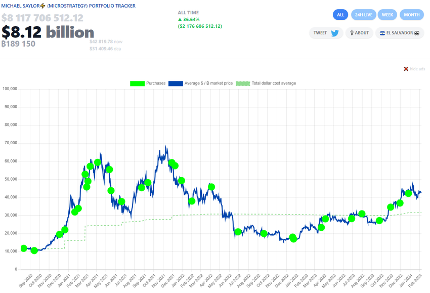 또한, 2023년 9월 말부터 시장 변동성을 이용해 현재 비트코인 가격보다 낮은 평균 구매 가격을 기록하는 등 상당한 양의 비트코인을 매입했다고 선언했습니다.