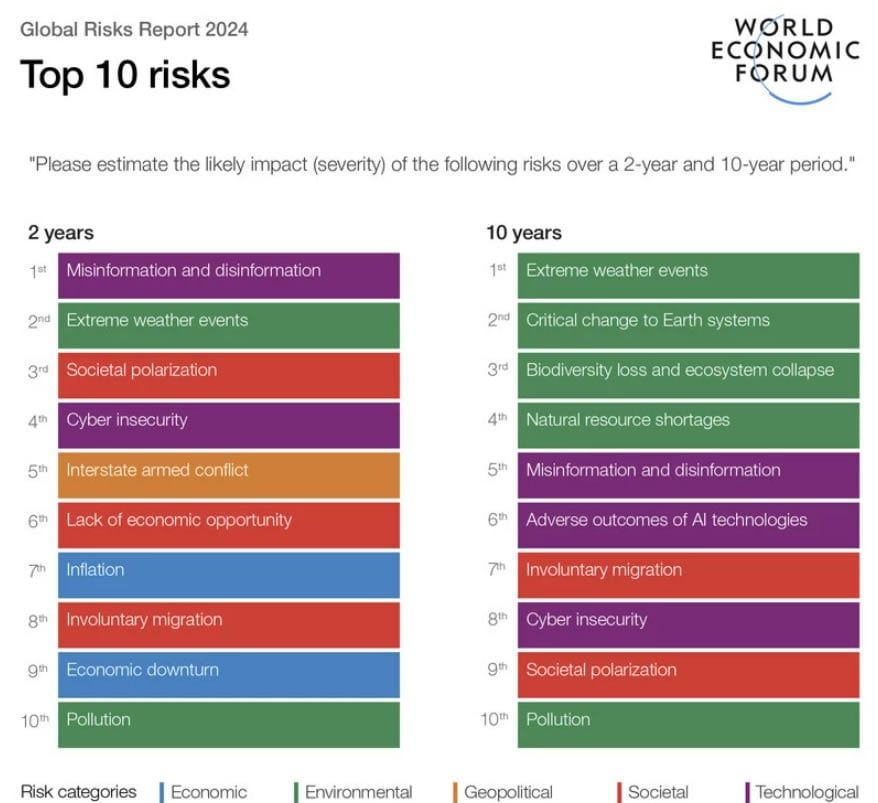 잘못된 정보와 허위 정보는 2년 동안 가장 큰 위험으로 꼽혔습니다. 생성형 AI의 발전으로 사기꾼들은 딥페이크 동영상을 훨씬 더 쉽게 제작할 수 있게 되었습니다. 또한, Meta 및 X와 같은 소셜 미디어 플랫폼은 사기와 가짜로 넘쳐나고 있습니다.