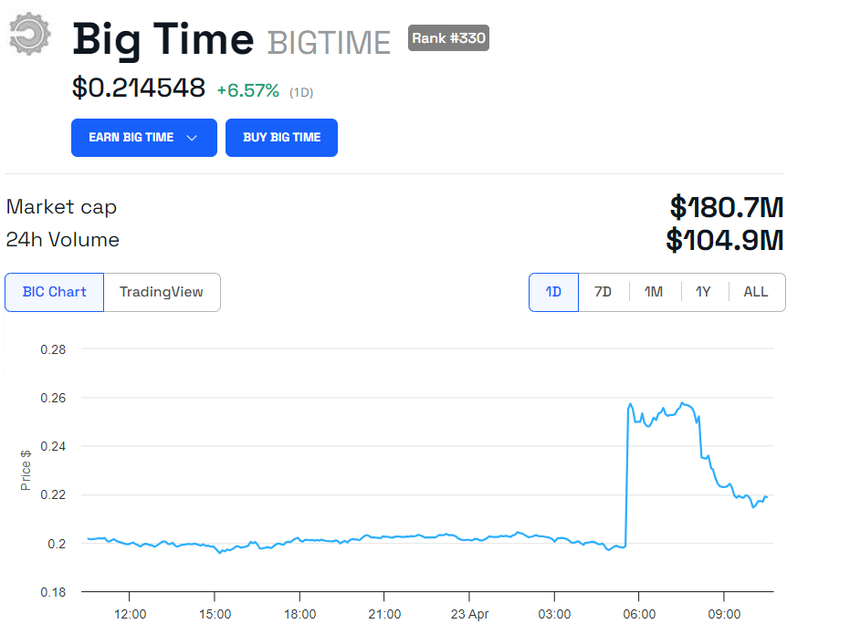 업비트의 최근 상장에는 빅타임(BIGTIME)도 포함되었습니다. 빅타임은 파괴 이전의 세계를 배경으로 한 무료 멀티플레이어 RPG 액션 게임으로, 사용자 중심의 게임 경제를 기반으로 생태계를 구축하는 것을 목표로 합니다.