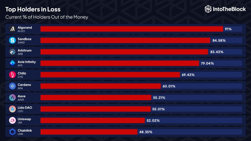 실제로 알고랜드(ALGO), 샌드박스(SAND), 아비트럼(ARB) 투자자의 80% 이상이 현재 손실에 직면해 있습니다.