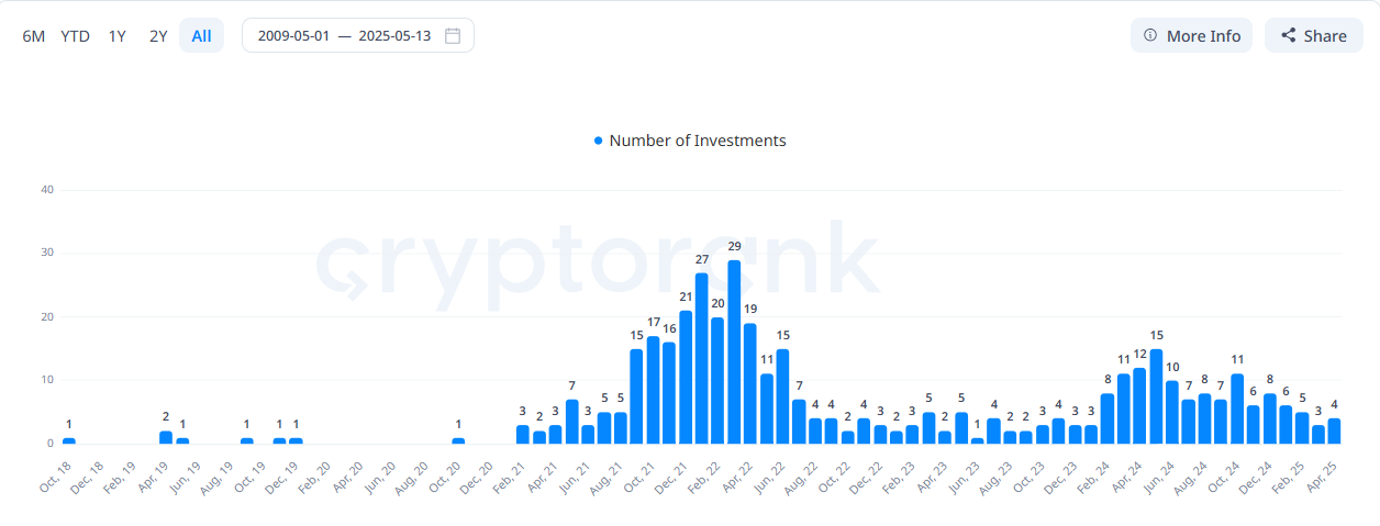 SponsoredCryptorank.io의 데이터에 따르면, 애니모카는 암호화폐 공간에서 가장 활발한 투자 회사 중 하나입니다. 400개 이상의 프로젝트에 투자했으며 평균 ROI는 1.93배입니다.