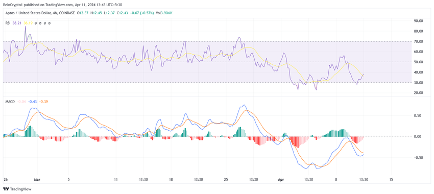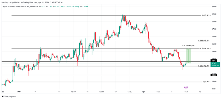 12.43 달러에 거래되는 앱토스의 가격은 지지선인 12.04 달러에서반등했습니다. 이는 지난 며칠 동안 상당한 고통을 겪은 강세 투자자들에게는 기회입니다.