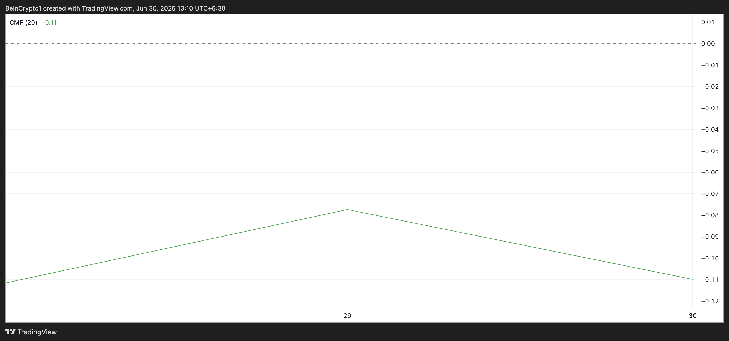 Sponsored게다가, 가격이 오르는 동안 알트코인의 차이킨 머니 플로우(CMF) 지표는 눈에 띄는 하락세를 보입니다. 현재 -0.12로, ARB의 가격과 약세 다이버전스를 형성하고 있습니다.