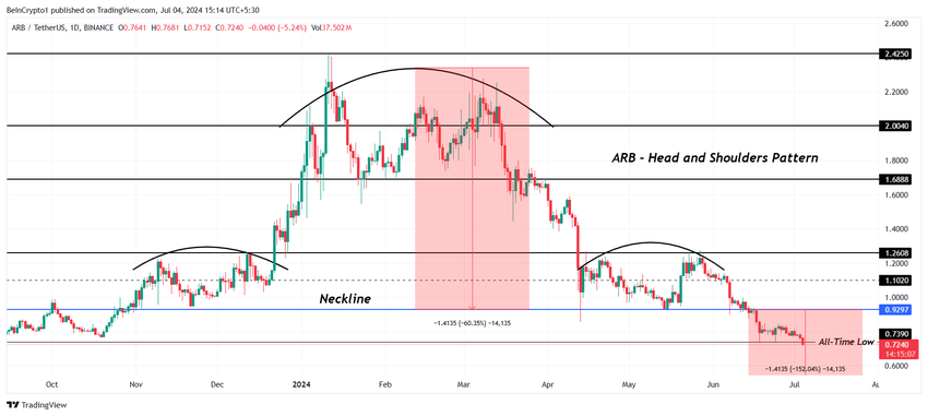 아비트럼(ARB)은 이번 시즌 주요 토큰 중 최초로 사상 최저치를 기록하는 등 투자자들에게 실망감을 안겨주었습니다.