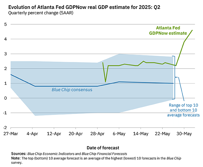 비관적인 1분기 예측에도 불구하고, 애틀랜타 연방준비은행은 현재 2025년 2분기 미국 GDP가 4.6% 증가할 것으로 추정하고 있습니다. 이 놀라운 반전은 암호화폐로의 새로운 자금 유입을 시사할 수 있습니다.
