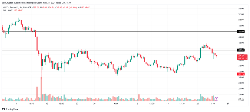 아발란체의 가격은 37달러로 한 달 동안 바닥을 다지던 박스권에서 벗어나 며 투자자들의 상승에 대한 옵티미즘을 다시 불러일으켰습니다. 그러나 AVAX는 저항선인 39달러 아래로 다시 하락하며 바닥을 다지는 모습을 보였습니다.