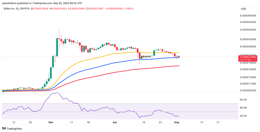SHIB의 최근 상황을 고려하면 이는 극적일 수 있습니다. SHIB은 연초 고점 대비 60% 급락하며 50일 지수이동평균 아래로 떨어졌고, 100일 EMA 수준에서 겨우 지지선을 찾았습니다.