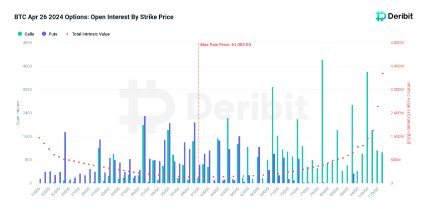 명목 가치로 약 92억 6천만 달러에 달하는 대량의 비트코인(BTC) 및 이더리움(ETH) 옵션이 2024년 4월 26일에 만기됩니다.