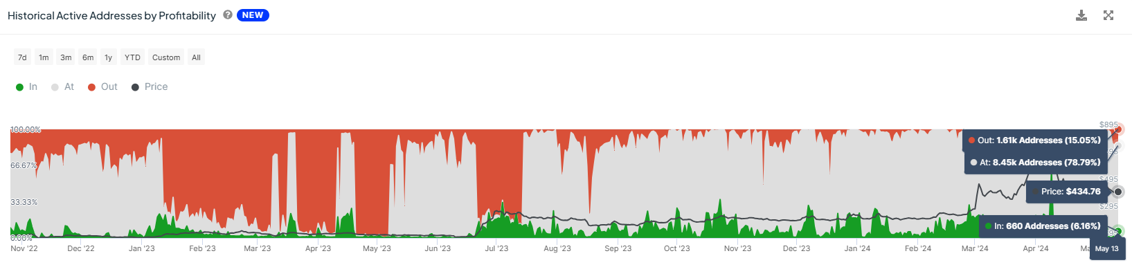 비트코인 캐시의 가격은 투자자들의 행동과 광범위한 시장 신호에 따라 회복세로 볼 수 있습니다. 첫 번째 힌트는 투자자들의 참여에서 찾을 수 있습니다. 활성 주소를 수익성 별로 나눠보면, 현재 수익을 내는 투자자들의 참여가 활발하지 않다는 것을 알 수 있습니다.