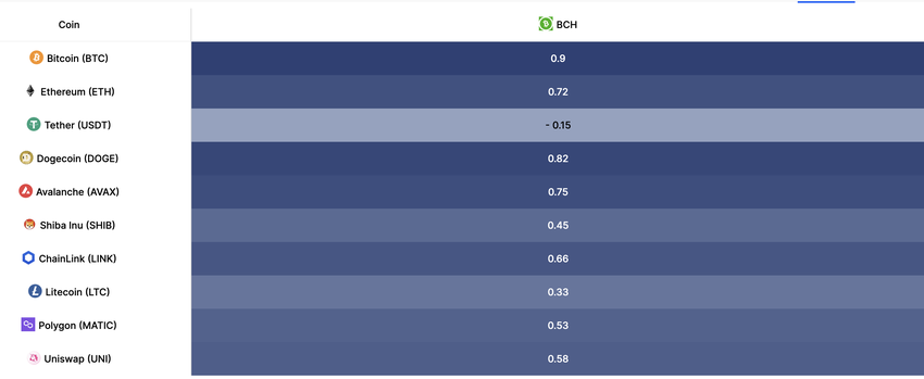 BCH의 가격 하락은 같은 기간 동안 비트코인이 급락했기 때문일 수 있습니다. 이는 두 암호화폐 간의 상관관계 때문입니다.