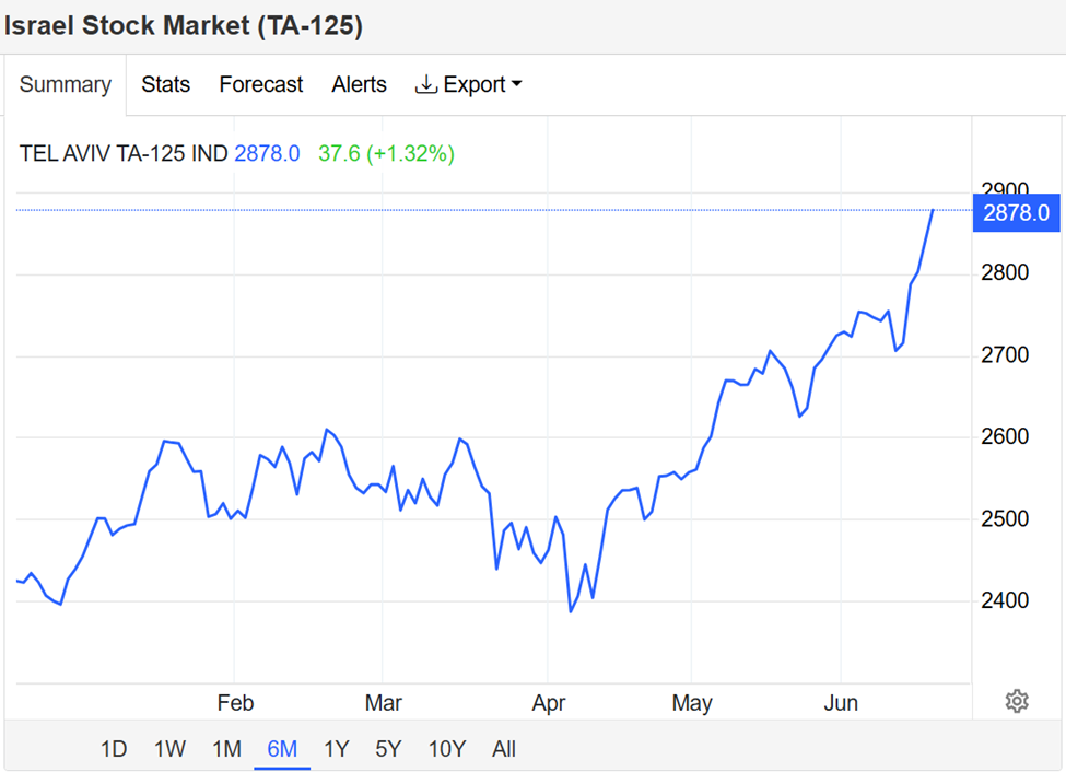 그러나 놀랍게도 시장은 반등하여 TA-125가 같은 날 52주 최고치를 기록했습니다. 즉각적인 결과로 TA-125는 0.53% 이상 급등했으며, 이는 정치적 불확실성 속에서 대단한 성과입니다.