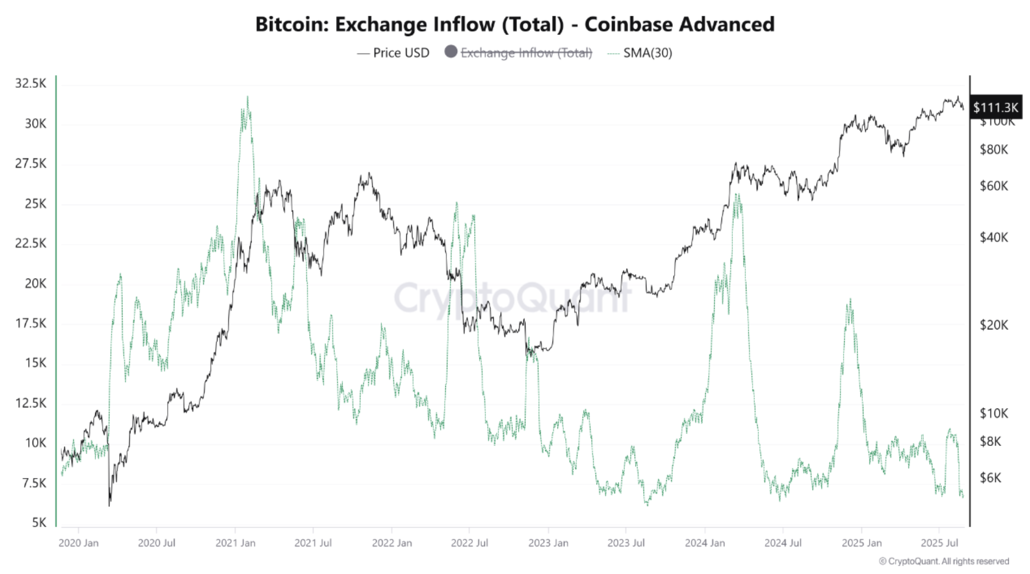 CryptoOnchain은 감소가 “중요하다”고 말했습니다. 그는 모든 거래소에서의 하락을 계산하고 이 감소를 가격 반등과 연결했습니다. 비트코인 가격은 11만1000달러로 상승했습니다.