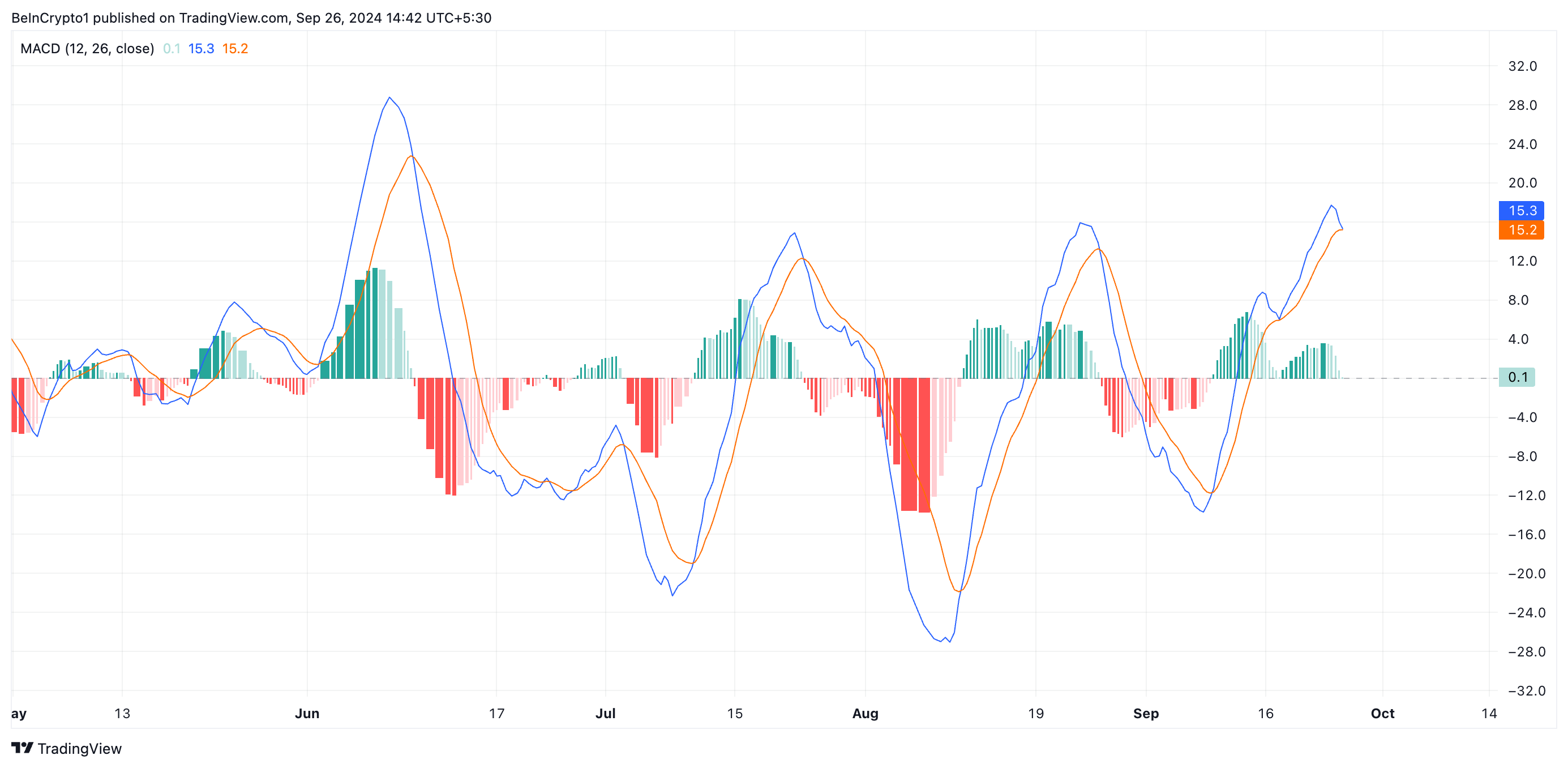 또한, 코인의 이동 평균 수렴/발산(MACD) 지표도 이러한 전망을 지지합니다. 현재 BNB의 MACD 선(파란색)이 신호 선(주황색) 아래로 교차할 준비가 되어 있습니다. 이는 시장 추세의 잠재적 변화를 나타냅니다.