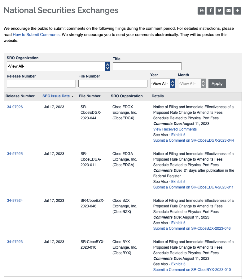 SEC는 다음주 11일까지 ETF에 대한 의견 수렴을 받는다.