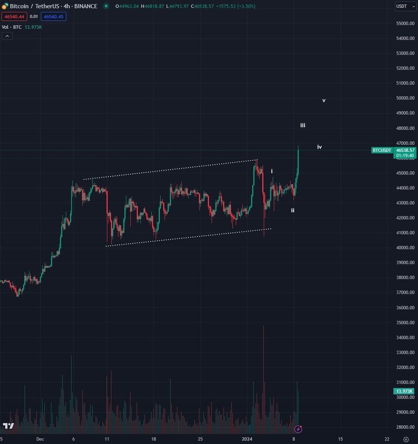 비트코인(BTC) 상장지수펀드(ETF) 승인 마감일은 1월 10일입니다. BTC 가격은 어제부터 상승세를 보이기 시작했습니다.