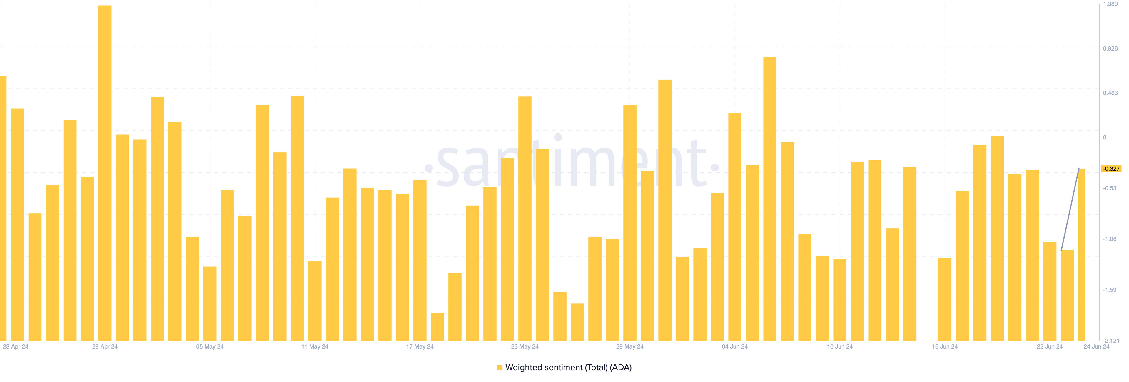 온체인 데이터에 따르면 시장 참여자들은 이 프로젝트에 대해 낙관적으로 보고 있습니다. 이는 가중 감정 등급 때문입니다.
