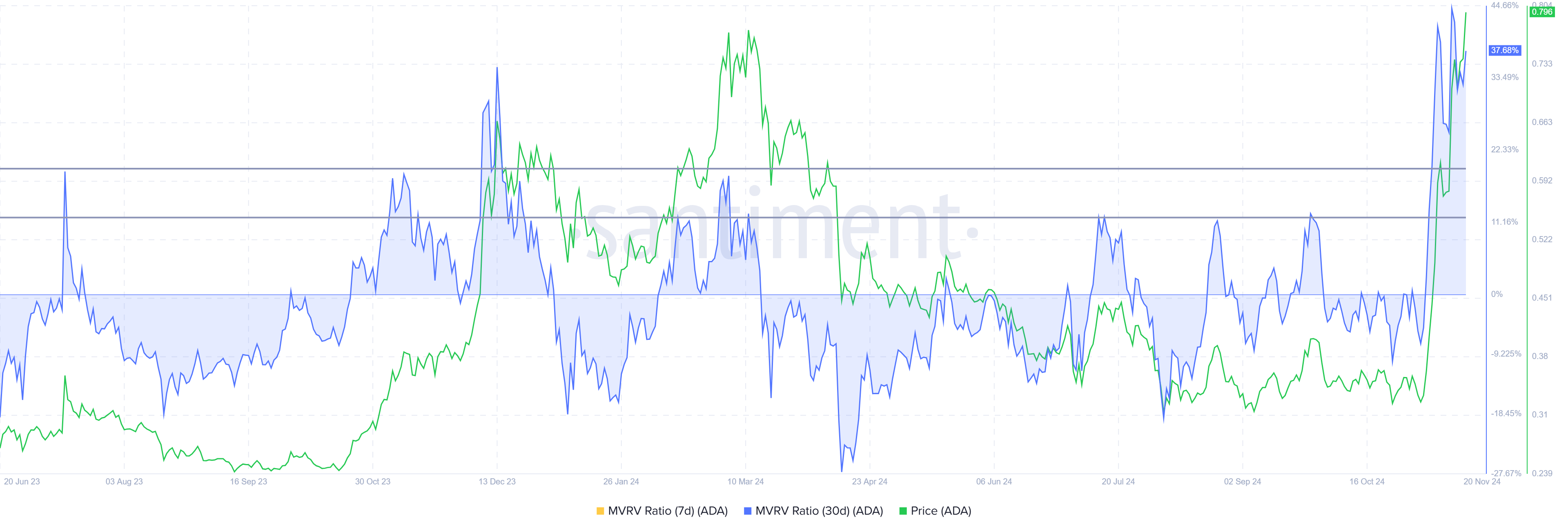 SponsoredADA MVRV 비율, 가격 과대평가 시사