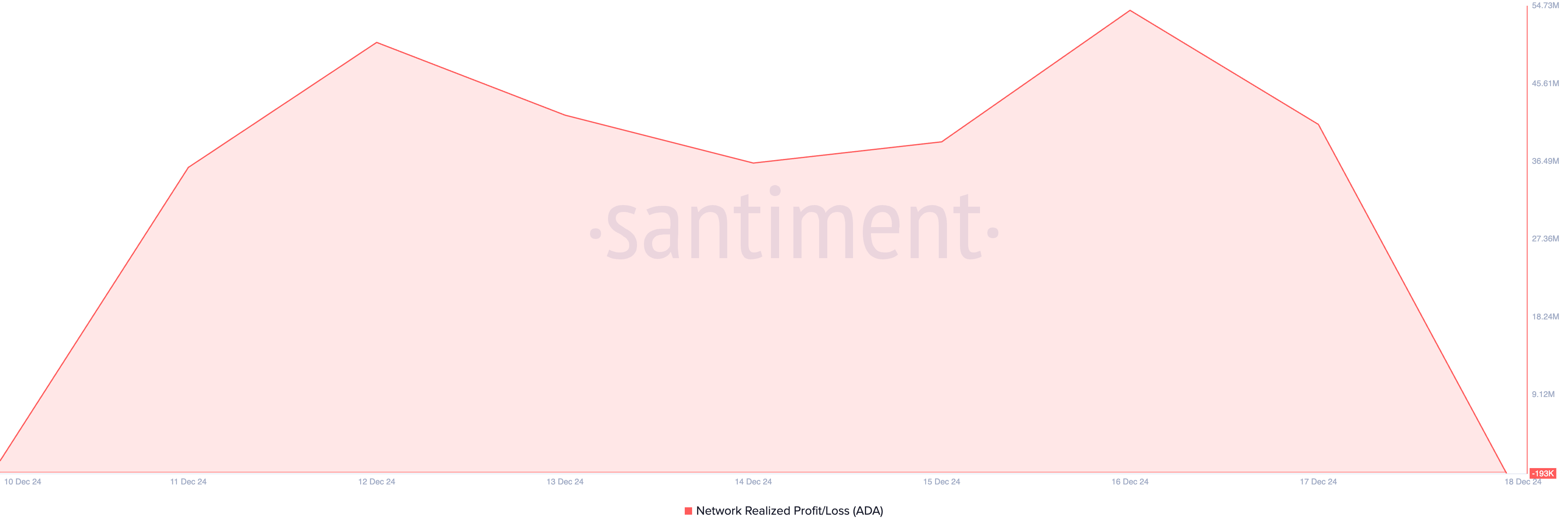 게다가, 지난 며칠 동안 ADA 거래의 수익성이 매도 증가에 기여했습니다. 센티멘트의 데이터에 따르면, 코인의 네트워크 실현 손익이 지난 7일 동안 지속적으로 긍정적이었으며, 이는 거래자들이 이익을 위해 매도하고 있음을 나타냅니다.