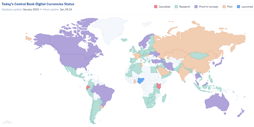 논쟁이 계속되는 가운데 글로벌 CBDC 분야는 계속 발전하고 있습니다. 애틀랜틱 카운슬은 대부분의 국가가 CBDC를 검토하거나 시행 중이며, 대중의 반응은 엇갈리고 있다고 지적합니다.
