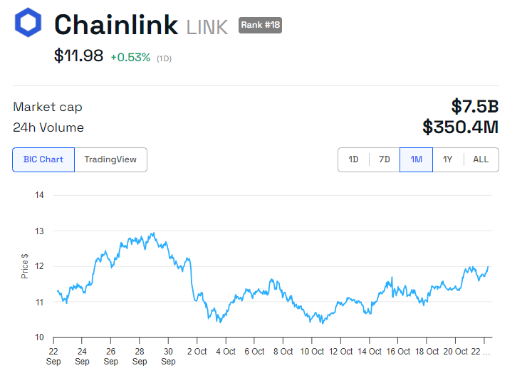 CCIP의 발전에도 불구하고, 커뮤니티는 종종 LINK 토큰의 부진한 성능에 실망합니다. BeInCrypto 데이터에 따르면 체인링크의 LINK 토큰은 이 소식에 0.53% 상승하여 현재 11.98달러에 거래되고 있습니다.
