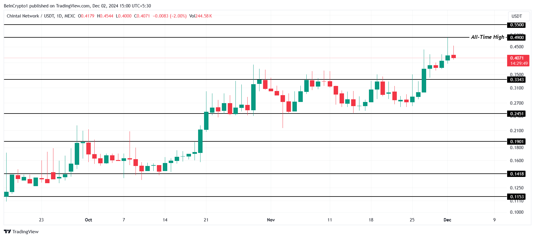 친타이 네트워크의 네이티브 토큰인 CHEX는 최근 11월 내내 지속된 조정 단계를 벗어났습니다.