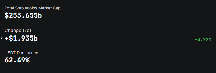 테더의 USDT는 여전히 글로벌 스테이블코인 시장을 지배하고 있으며, 62.5%의 점유율을 차지하고 있습니다. 그 사용의 대부분은 미국 외부, 특히 아시아에서 발생합니다.