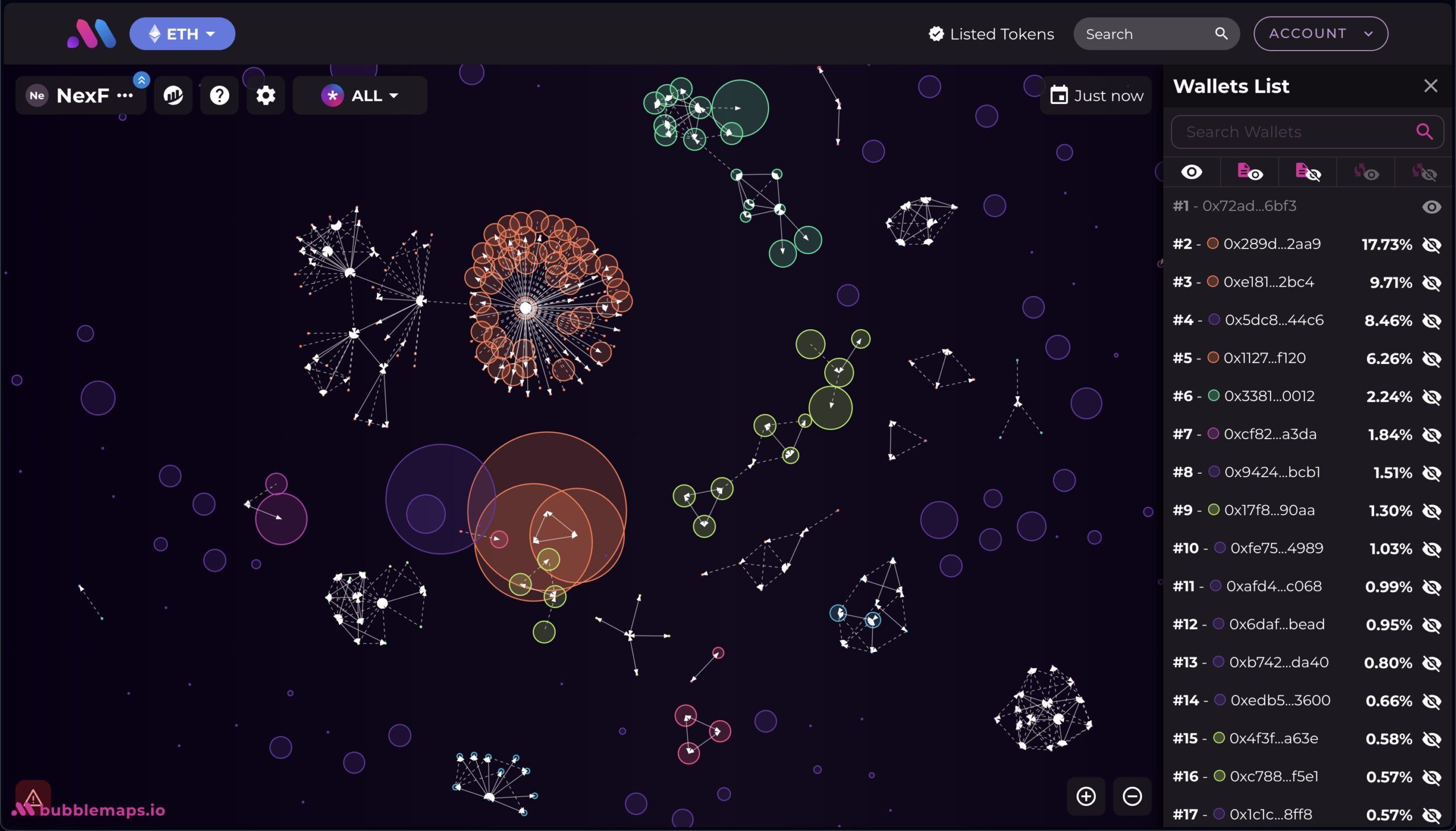 NexFundAI는 2024년 5월 말에 만들어진 ERC-20 토큰으로, 총 공급량은 980억을 초과합니다. 토큰을 출시한 후 FBI는 용의자를 유인하기 위해 “버블 맵”에 기록된 여러 거래를 조직했습니다.