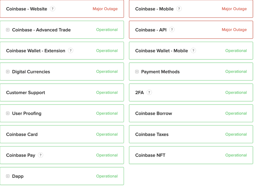 암호화폐 거래소 시장의 주요 업체인 코인베이스가 현재 시스템 전반의 심각한 장애로 인해 오프라인 상태입니다.