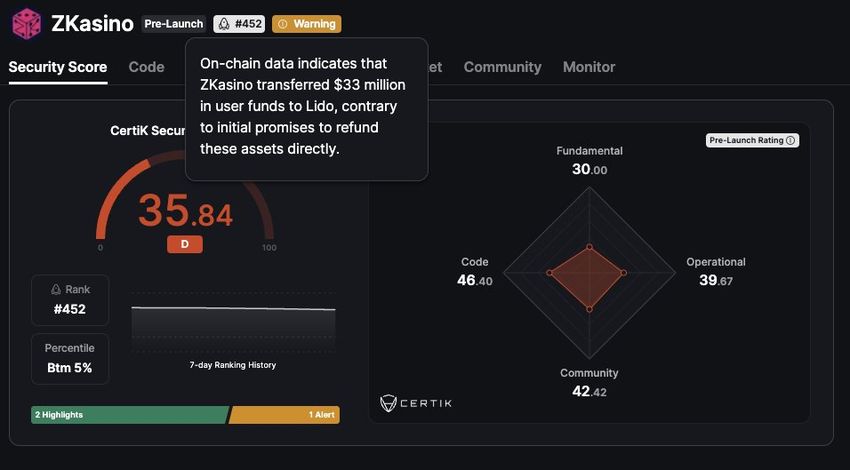 또한, 탈퇴 사기로 인해 430만 달러의 손실이 발생했습니다. 설립자가 투자금을 가지고 도주하는 이러한 사기에는 암호화폐 카지노 ZKasino의 러그 풀 의심 사건과 같은 주목할 만한 사건이 포함되었습니다. 이 카지노는 3,200만 달러의 이더리움을 유용했을 가능성이 있는 것으로 조사 중입니다.