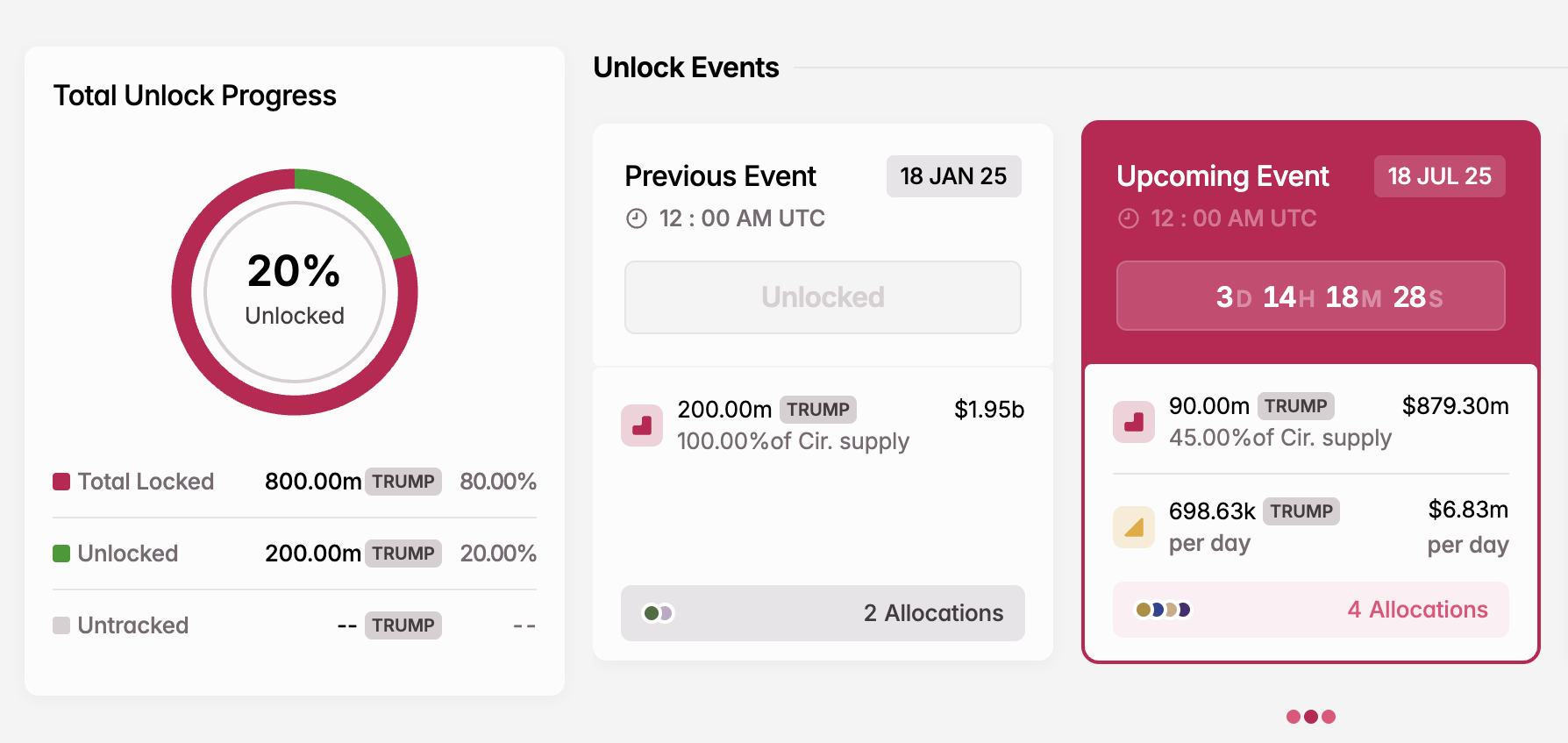 - 언락될 토큰 수: 9000만 TRUMP (총 공급량의 9%)