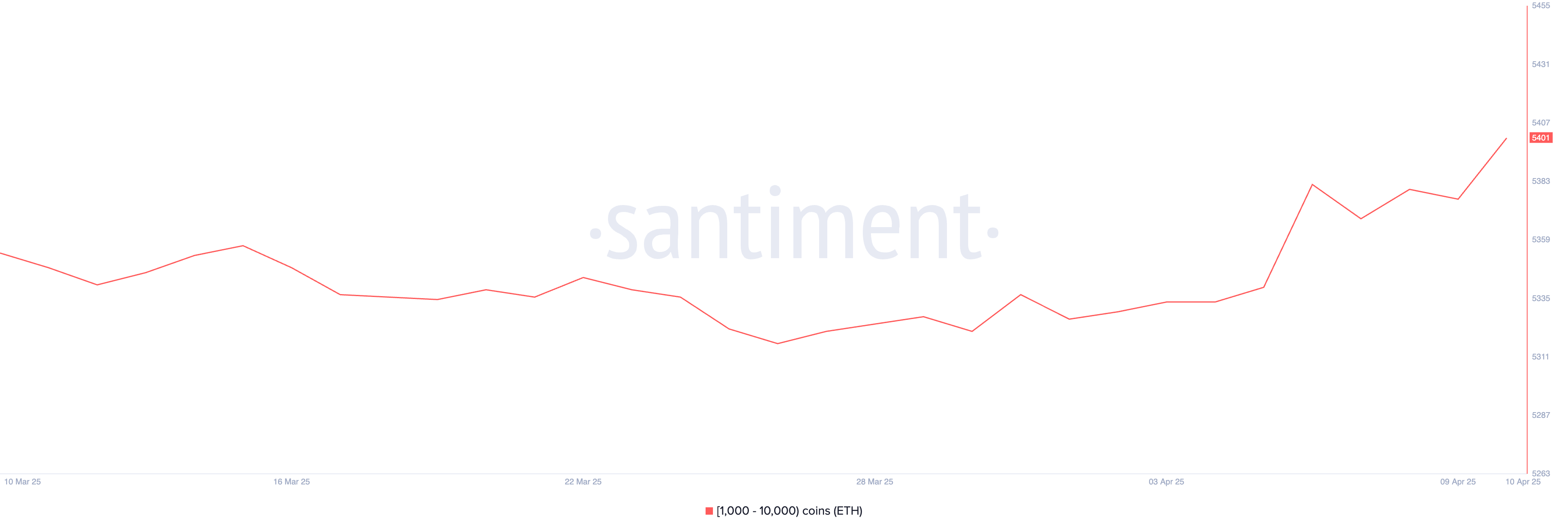 이더리움도 이에 따라 고래 활동이 증가했습니다. 4월 9일부터 10일까지 1000에서 1만 ETH를 보유한 주소 수가 5376에서 5417로 증가했습니다. 이는 2023년 9월 이후 최고 수준입니다.