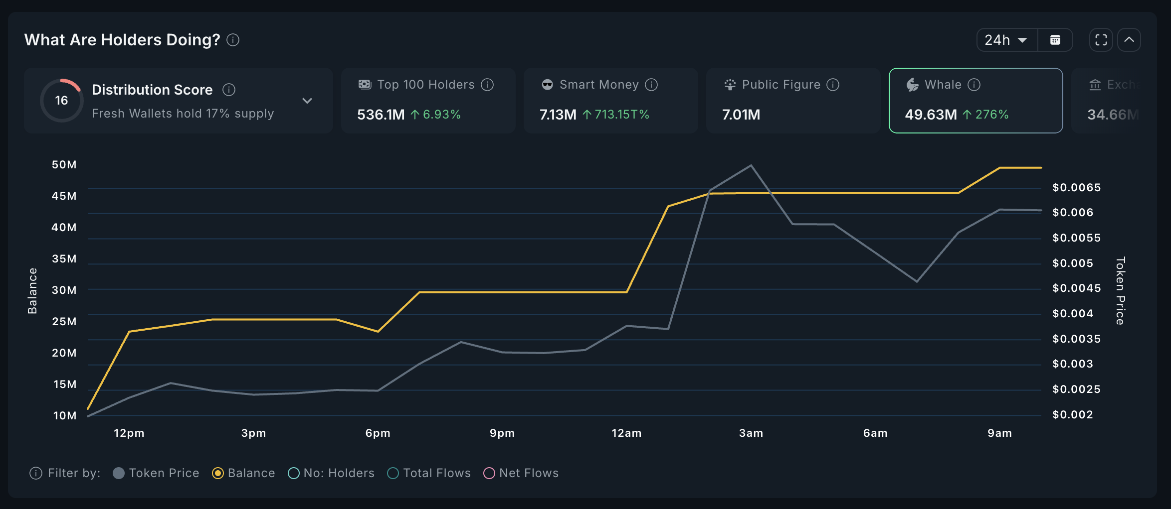 지난 24시간 동안 암호화폐 고래들의 CANDLE 보유량이 47.83% 증가하여 1억86만개에서 1억4910만개로 늘어났습니다.
